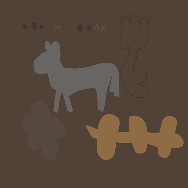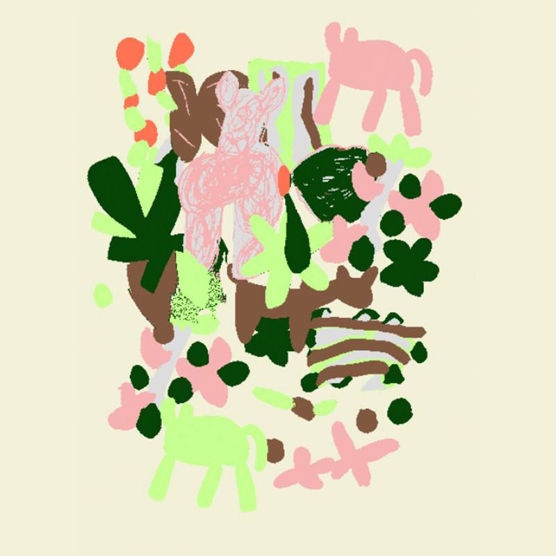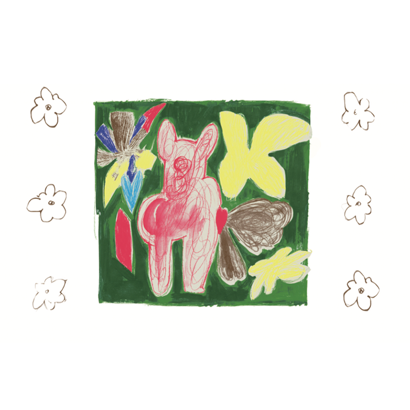 抽象花朵小熊小马组合图案