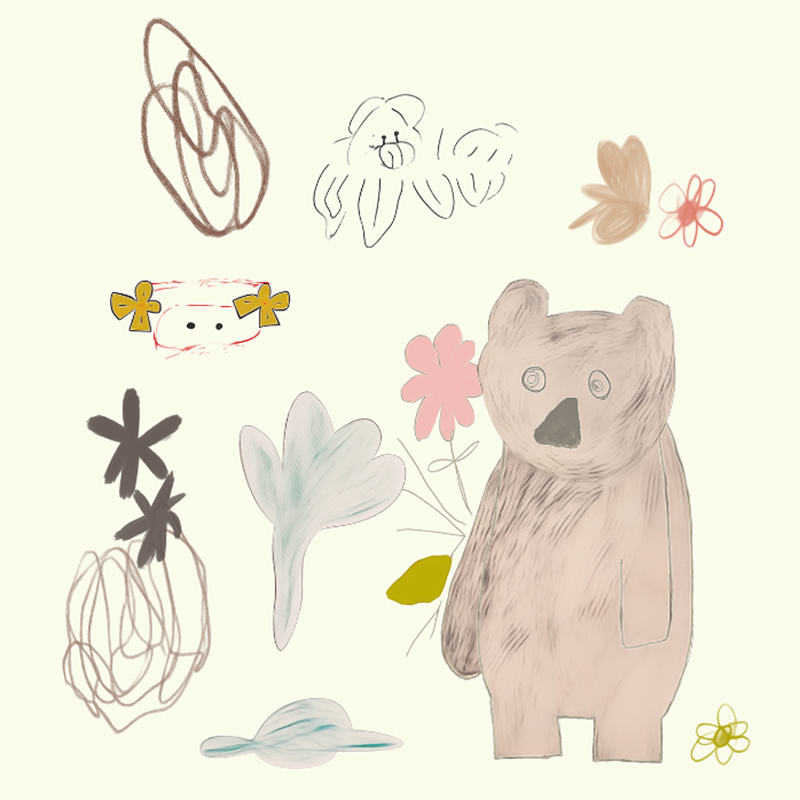 涂鸦小熊花朵组合图案