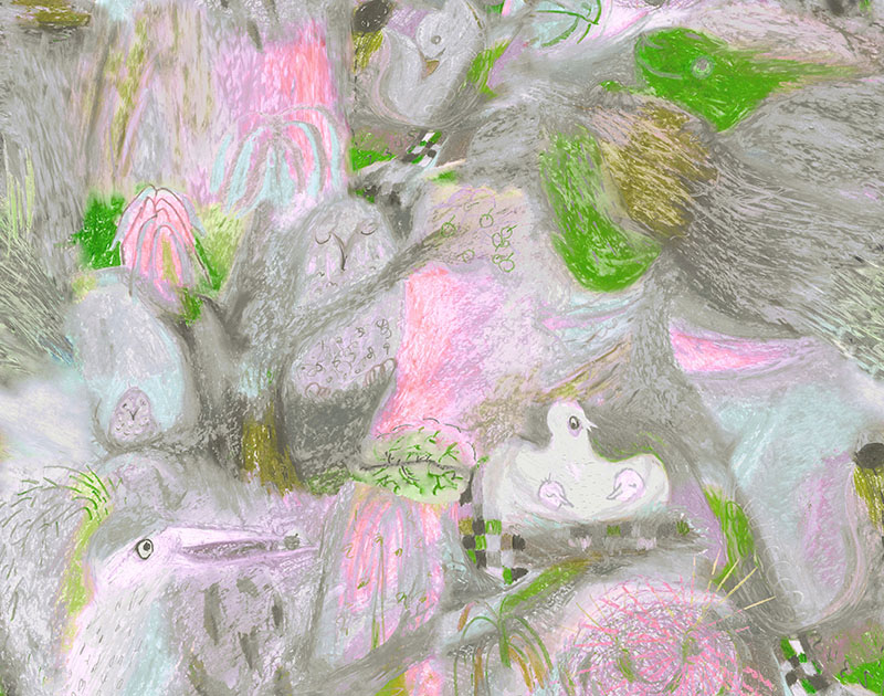 树木草地叶子小鸟毛衣 提花排列