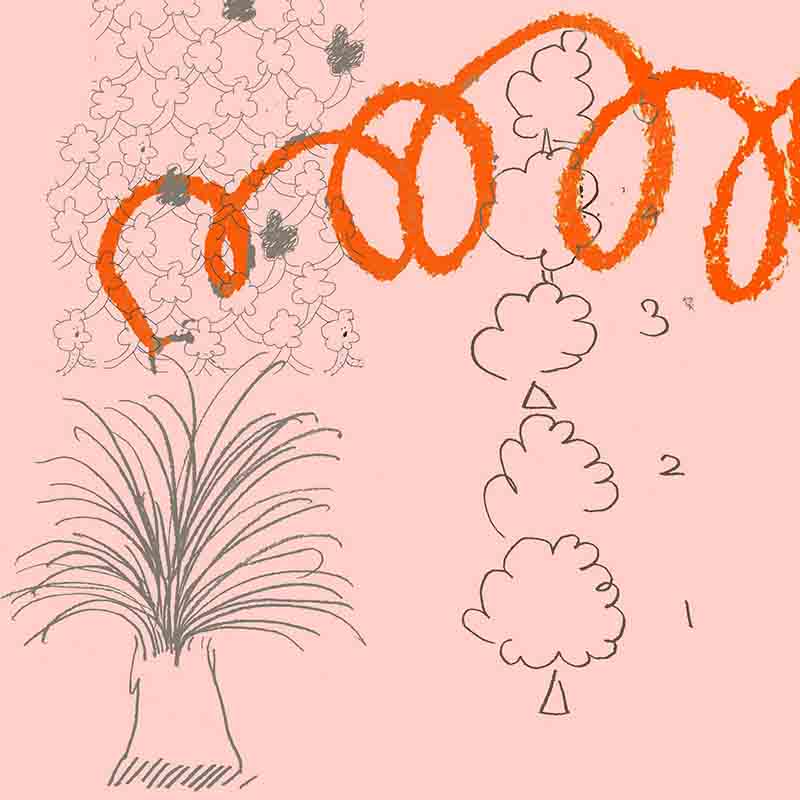 手绘松果和青草